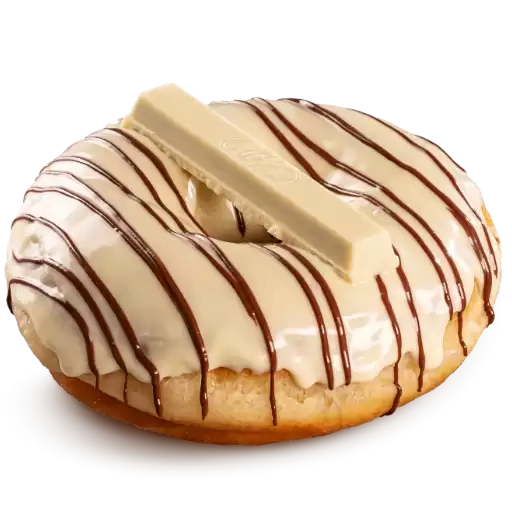 Uma cobertura única de chocolate branco, fios de chocolate ao leite e pra finalizar aquele famoso Kit Kat Branco.