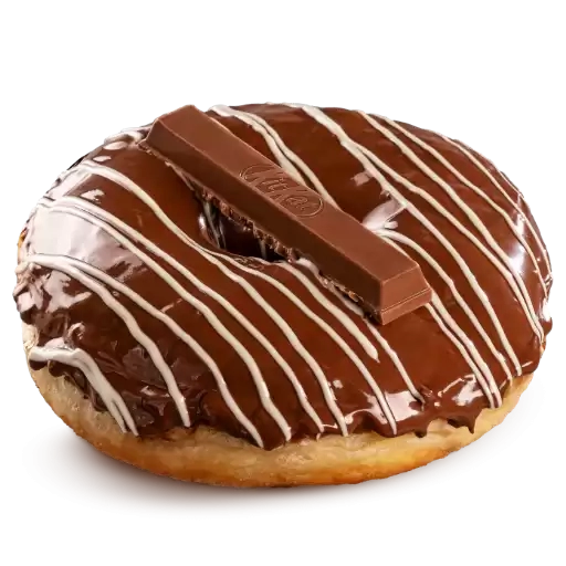 Uma cobertura única de chocolate ao leite, fios de chocolate branco e pra finalizar aquele famoso Kit Kat.